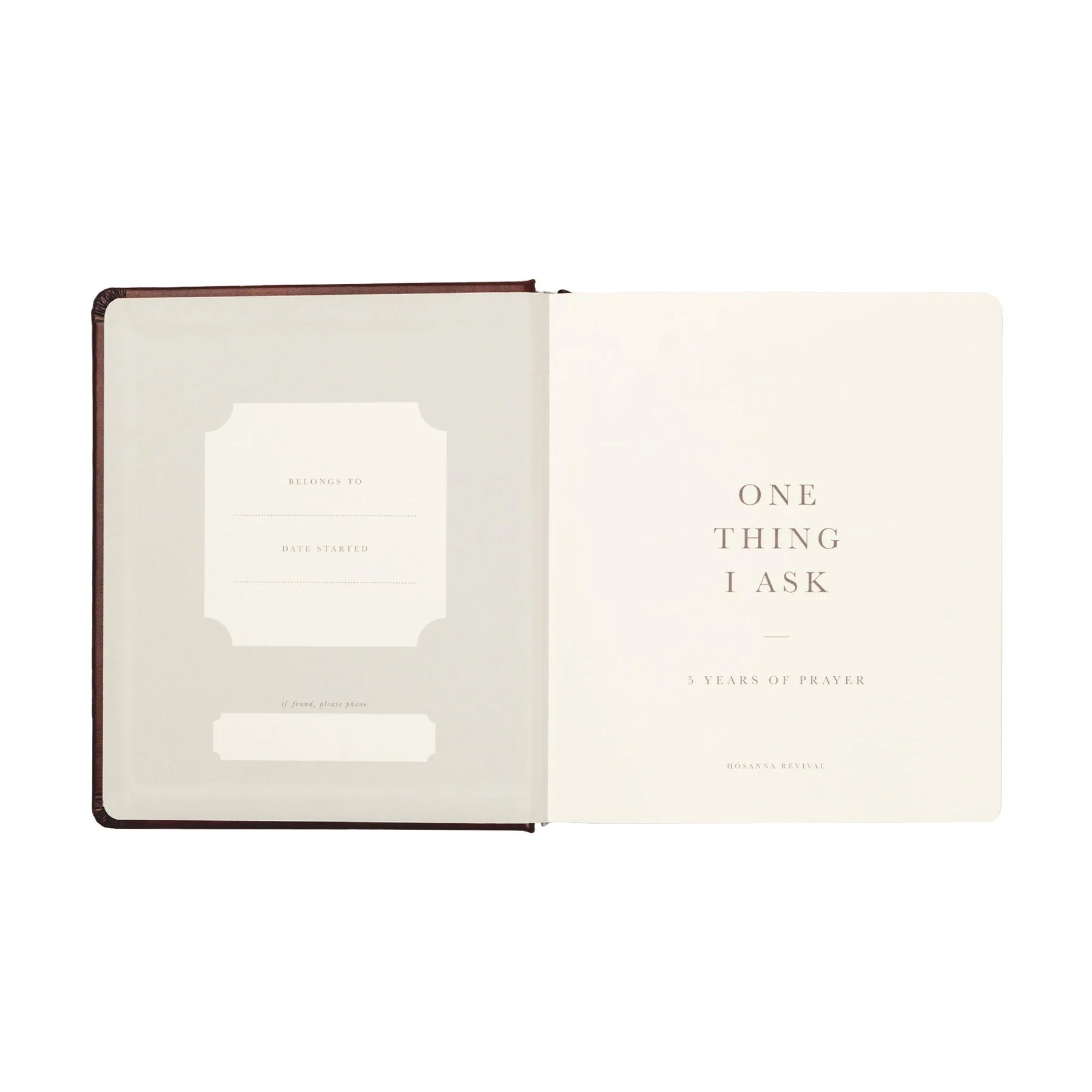 One Thing I Ask is a 5-year prayer journal dreamt up and designed by Hosanna Revival. These beautiful journals were designed to help you remember the faithfulness of God as you journal your prayers. This keepsake journal contains 366 unprompted daily spreads with five entries per day to document your prayers over five years. Each date offers 7 lines per day where you can summarize your prayers into short phrases, or jot them down as bullet points. Over the next five years, this journal will become an active record of the movement of God in your life.
