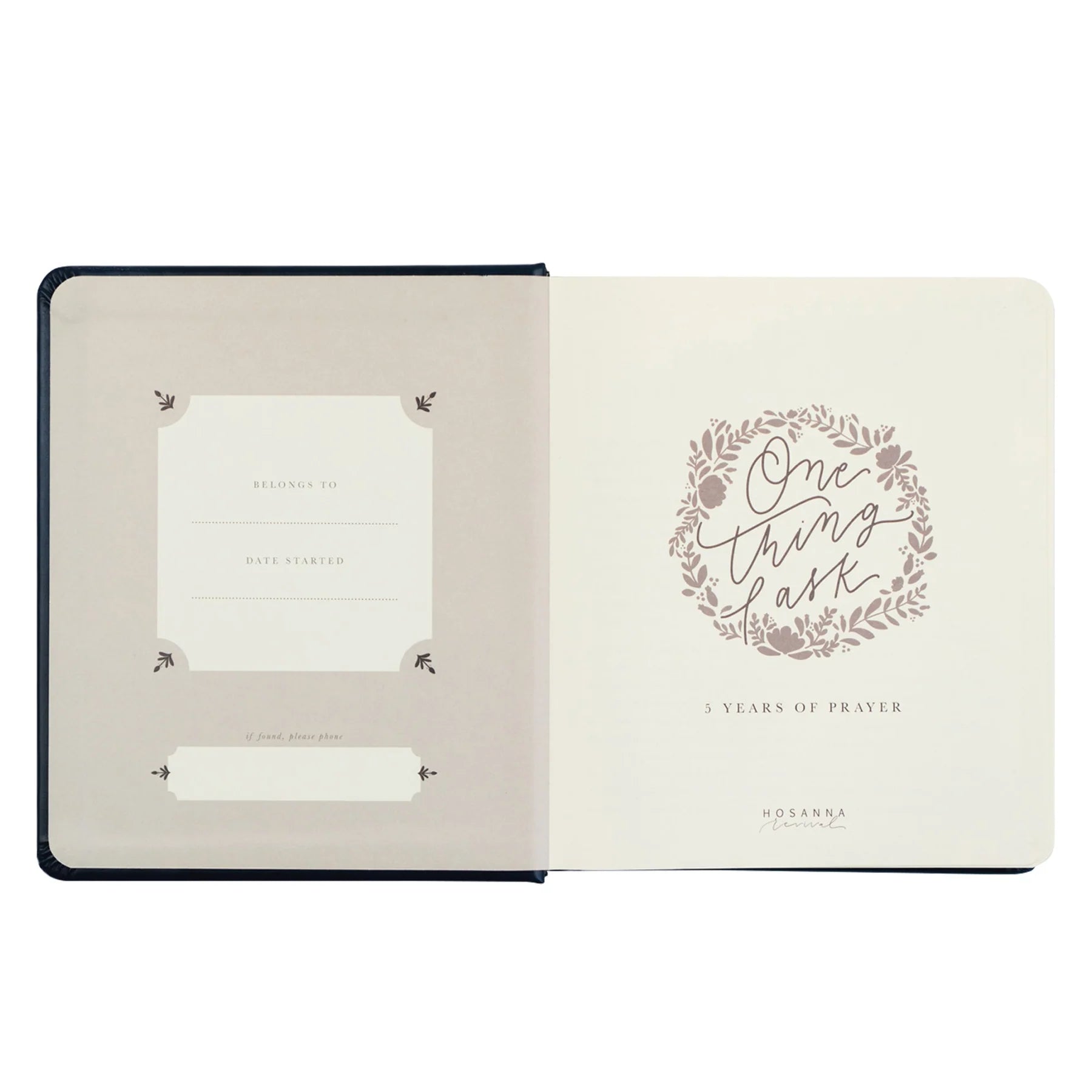 One Thing I Ask is a 5-year prayer journal dreamt up and designed by Hosanna Revival. These beautiful journals were designed to help you remember the faithfulness of God as you journal your prayers. This keepsake journal contains 366 unprompted daily spreads with five entries per day to document your prayers over five years. Each date offers 7 lines per day where you can summarize your prayers into short phrases, or jot them down as bullet points. Over the next five years, this journal will become an active record of the movement of God in your life.