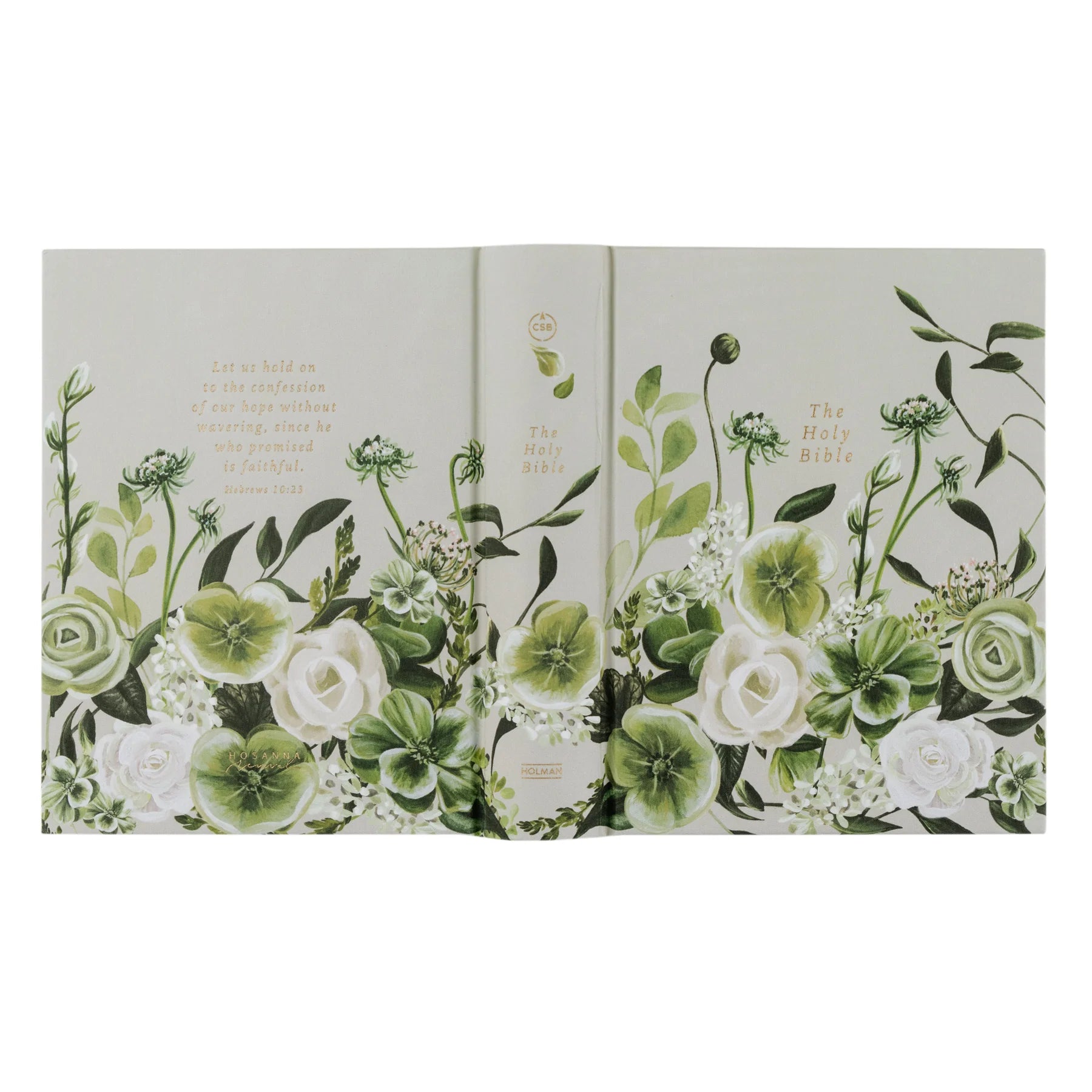This CSB Bible features our Dorset design, a nod to the Forde Abbey and Garden just outside of Dorset County in England. This spot is home to 30 acres of gardens, meadows, and nurseries that are overflowing with life. This design features the Lenten Rose—a rose known for its resilience through a variety of conditions—paired with beautiful white garden roses and hydrangeas. Regardless of what you have walked through, whether pain or joy, may the resilient nature of these flowers fill your heart with hope that your heavenly Father will uphold you in your weakest moments. This beautiful Bible features Hebrews 10:23 on the back, “Let us hold on to the confession of our hope without wavering, since he who promised is faithful.” This speaks to our ability to have hope in Jesus as our Savior and our trustworthy Father. As you hold this Bible in your hands, our prayer is that you will be refreshed with its beautiful design and encouraged to seek the throne of grace, experiencing God’s steadfast love each day.