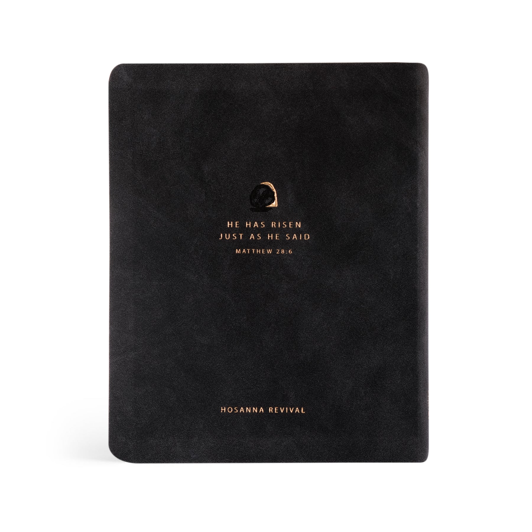 This black leather-like Bible is based on the beloved city of Jerusalem in Israel, where history unfolds in the Old and New Testaments and where the last week of Jesus’s life was spent. May we never forget the unashamed, powerful ministry that took place in the city that saw Jesus's arrest, trial, crucifixion, entombment, and resurrection. A gold-foiled design of Jesus’s open tomb is placed on the cover of this Bible, symbolizing his victory over death and defeating every act of evil that has ever been and will ever be. The back of the Bible features Matthew 28:6, “He has risen just as he said,” a verse that declares the power and sovereignty of God. Our prayer is that this verse reminds you of God’s trustworthy character and the victory he has over your life!