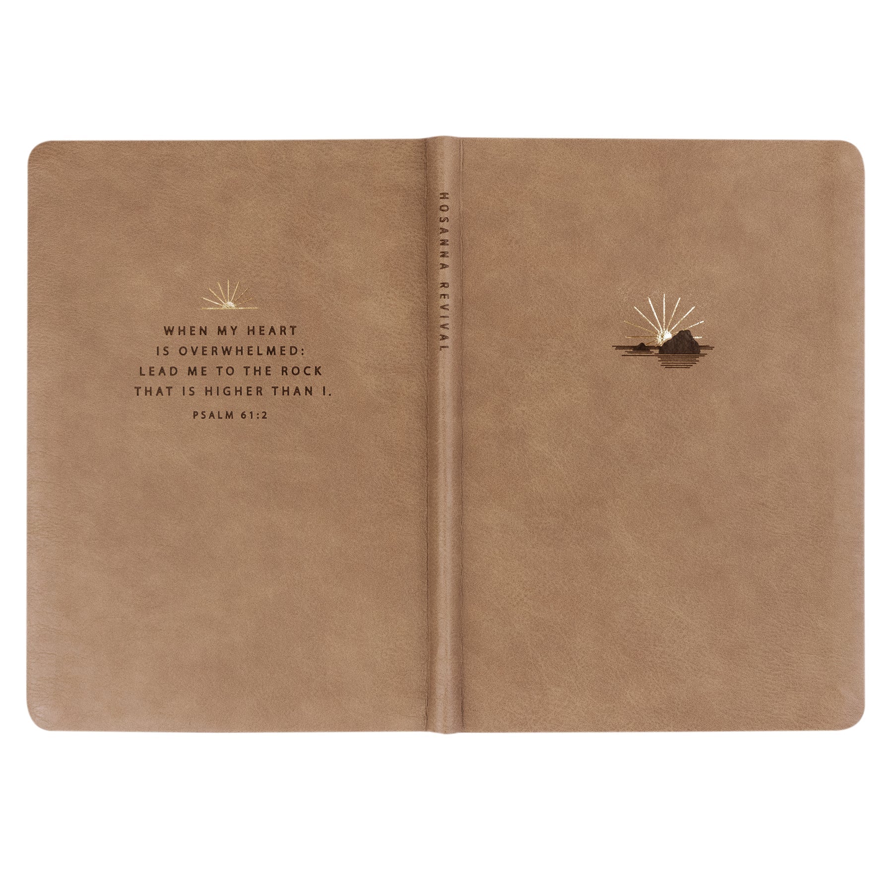 This beautiful, minimal design features the sun rising over the Sea of Galilee and a large, unmovable rock planted firmly in it. The warm desert tones of this Bible remind us of the dust roads Jesus walked, growing up in Nazareth, a Galilean town. This beautiful notebook’s minimal artwork is paired with Scripture from Psalm 61:2, “When my heart is overwhelmed: Lead me to the rock that is higher than I.” This serves as a sweet reminder that we have a steadfast King—our refuge and hope when we find ourselves overwhelmed.